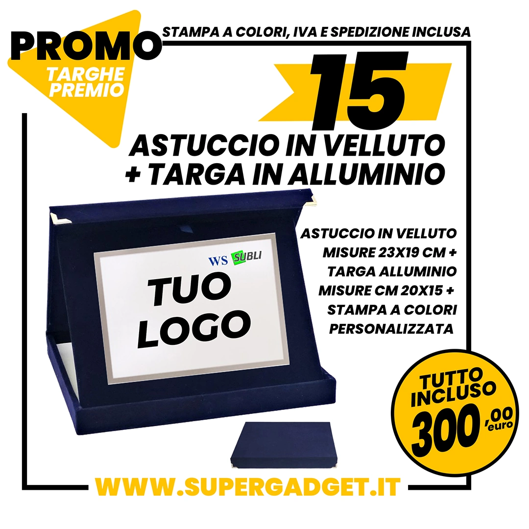 Misura scatola in velluto 23x19cm – Misura targa in alluminio 20x15cm